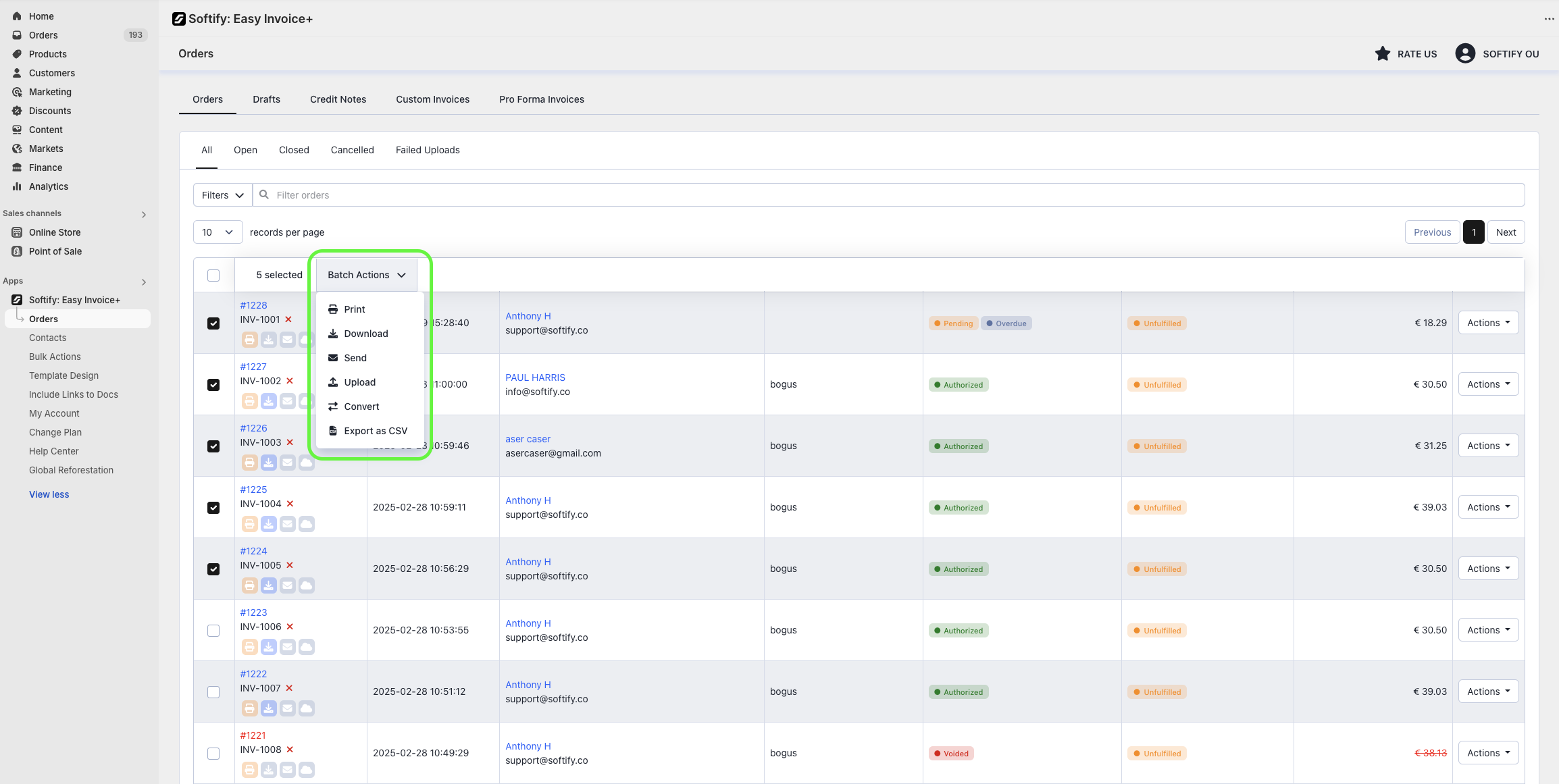 Step C: Click on the Print dropdown menu and choose Softify: Easy Invoice+.