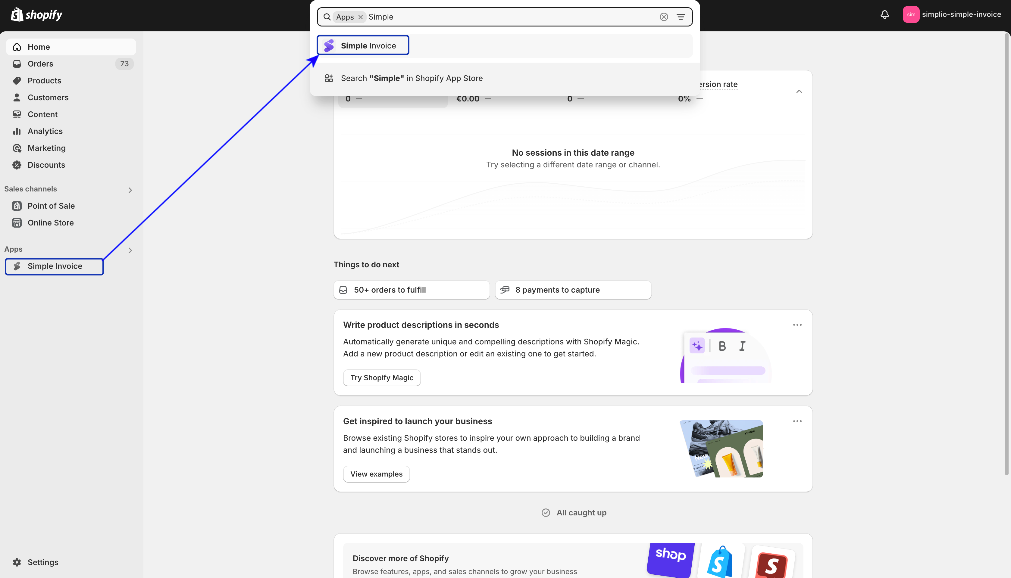 Step 1: Open Simple Invoice from your Shopify store’s “Apps” section.