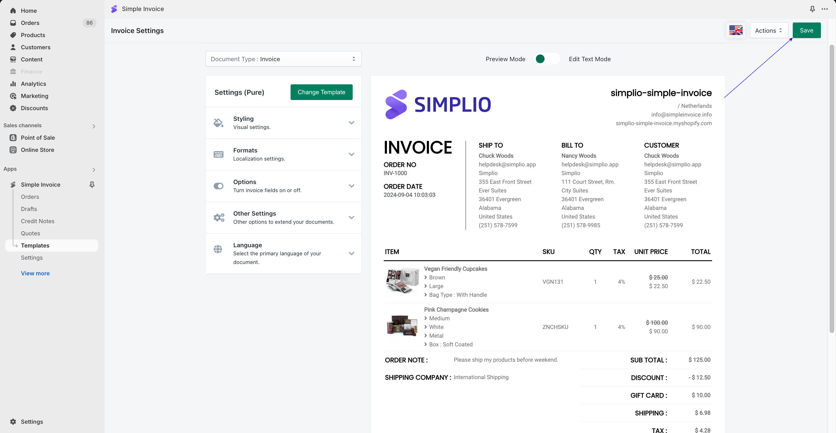 Step 1: Open Simple Invoice from your Shopify store’s “Apps” section.