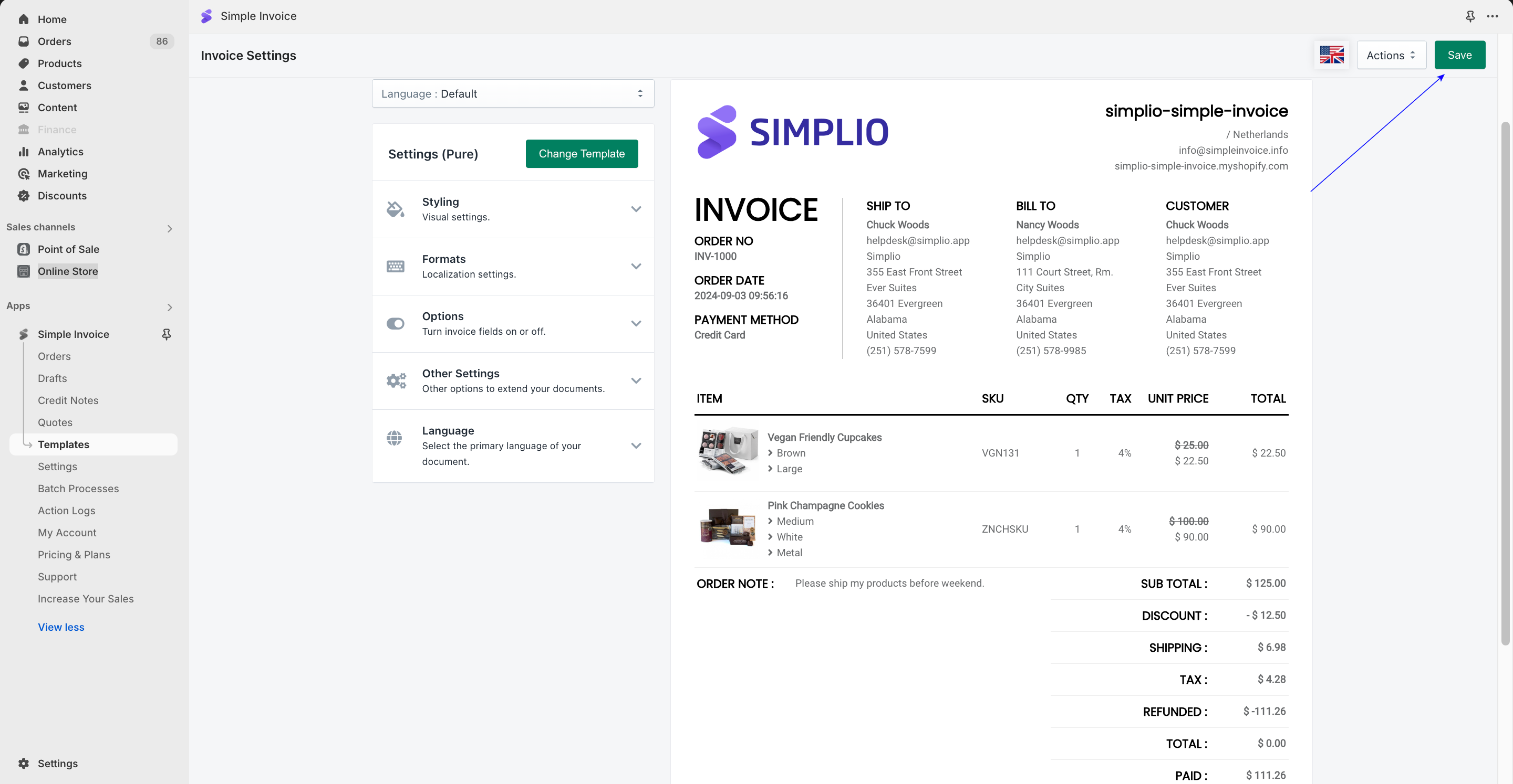 Step 1: Open Simple Invoice from your Shopify store’s “Apps” section.
