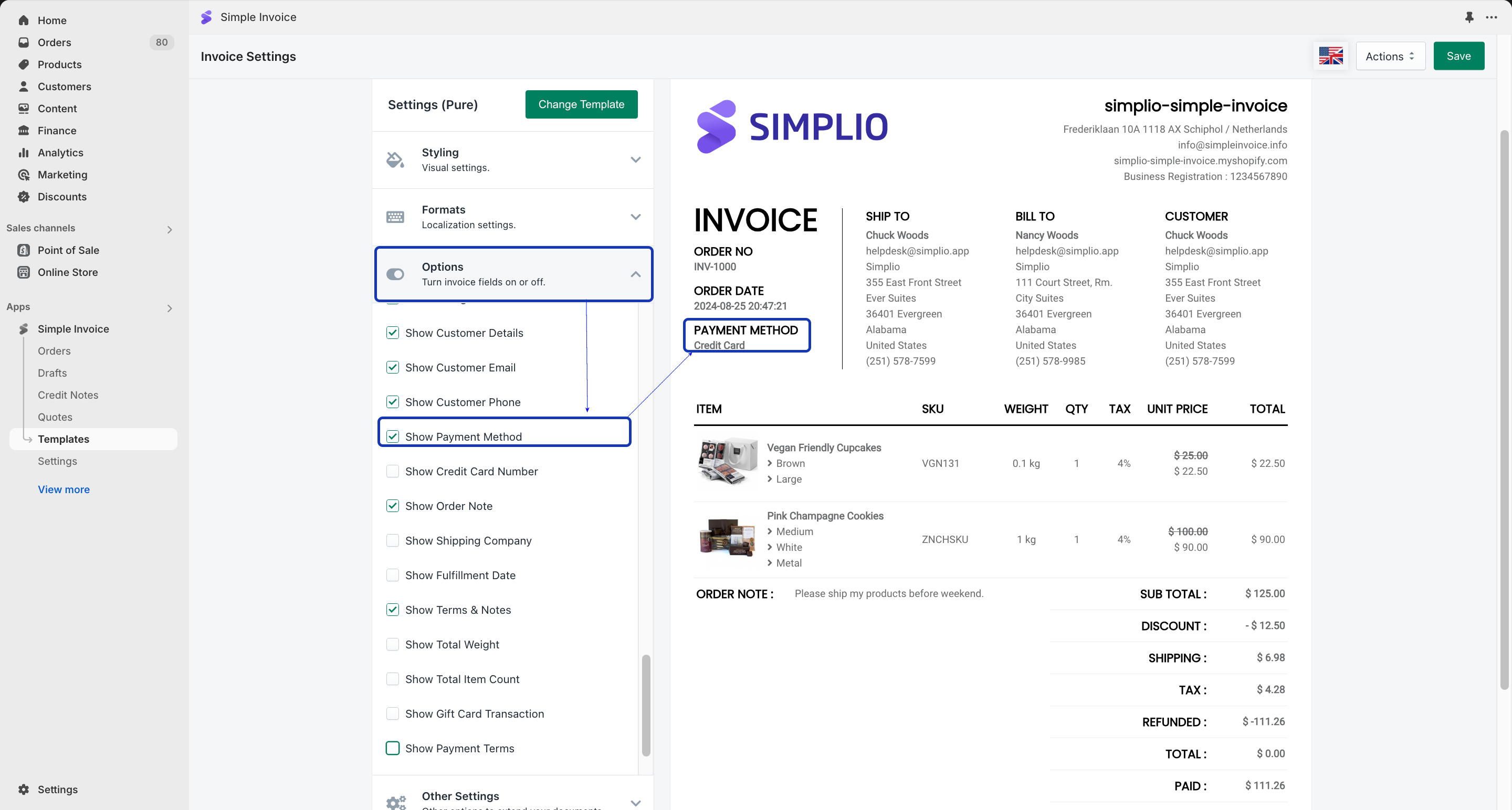 home/Help Articles/Simple Invoice ‑ Order Printer/How can I show the payment method on my invoices?