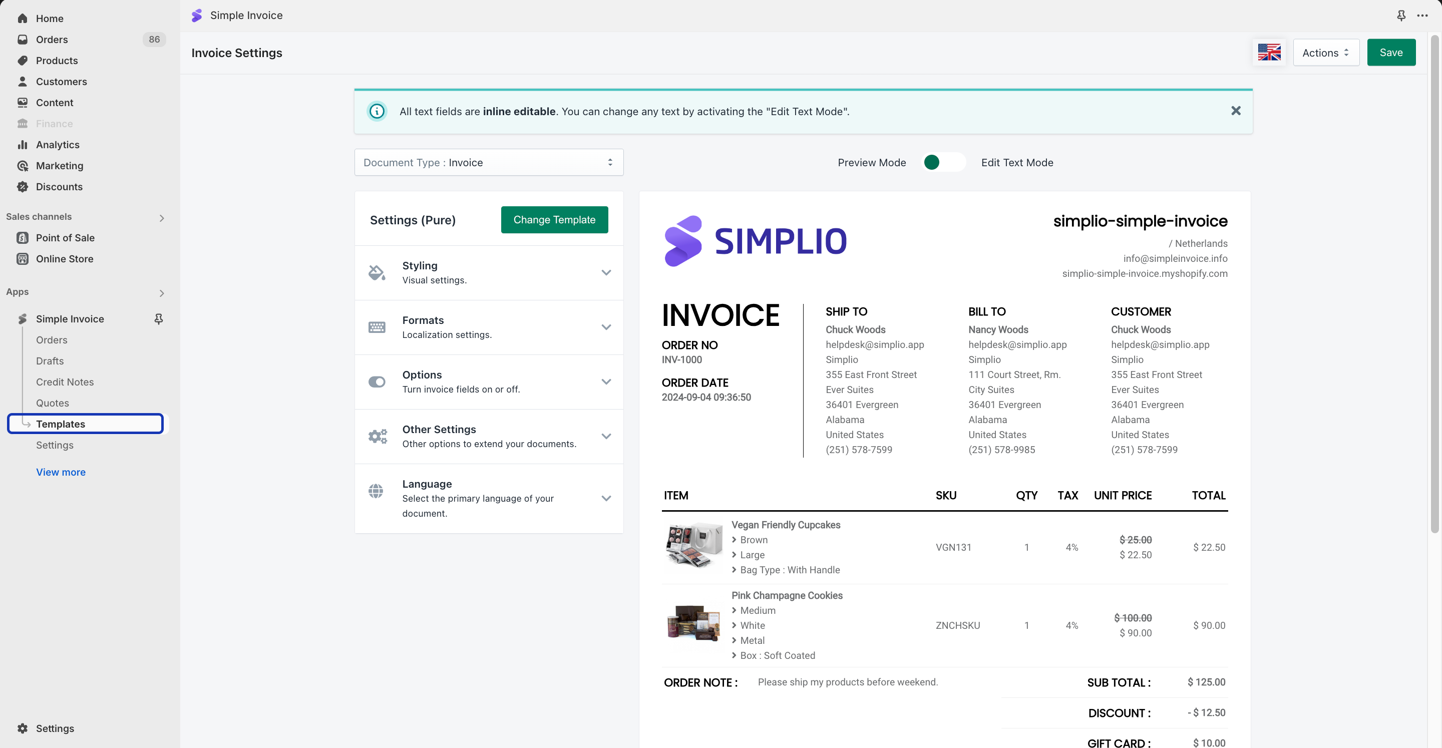 • Does Simple Invoice support Shopify’s multi-currency conversion functionality?