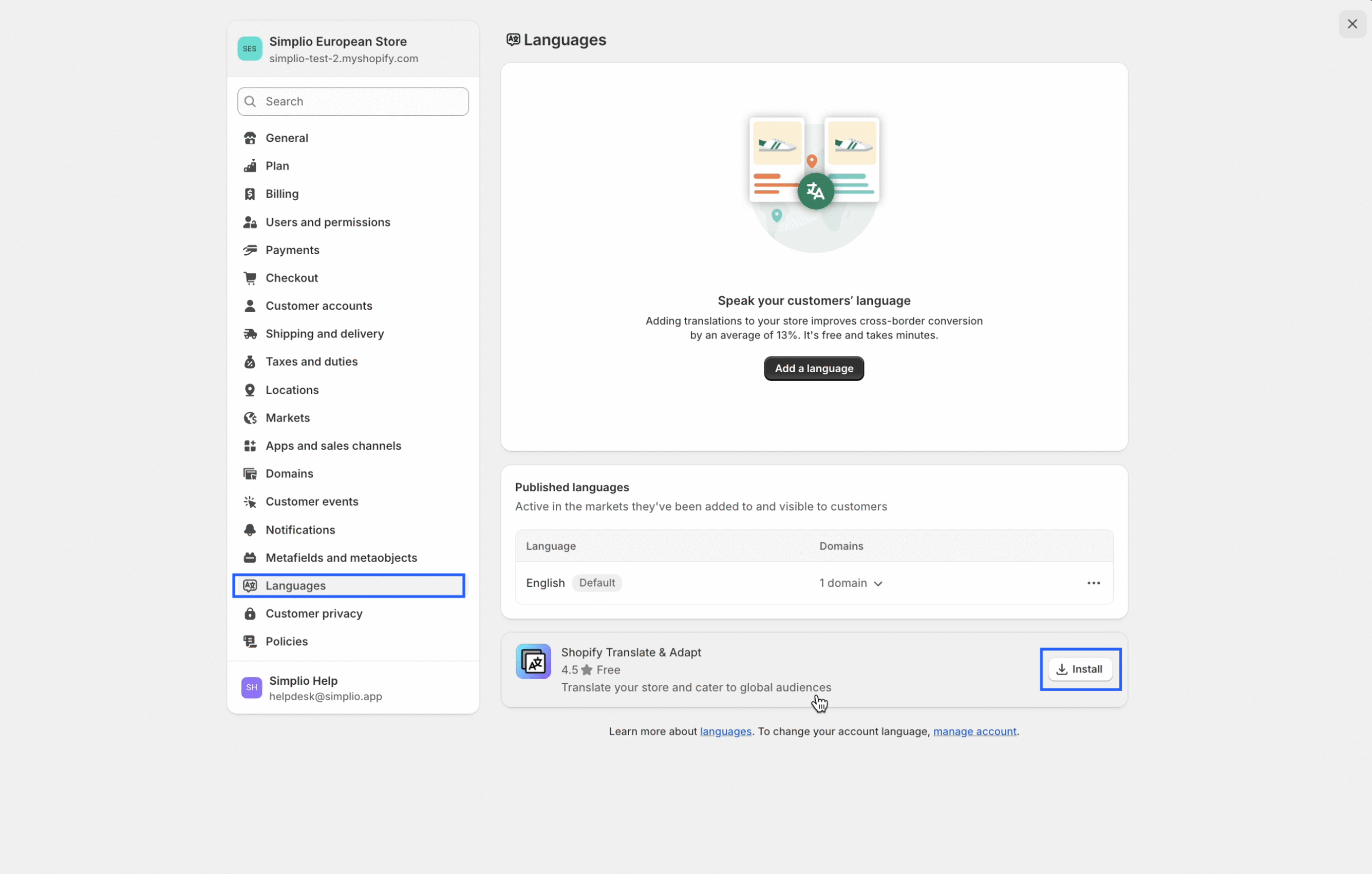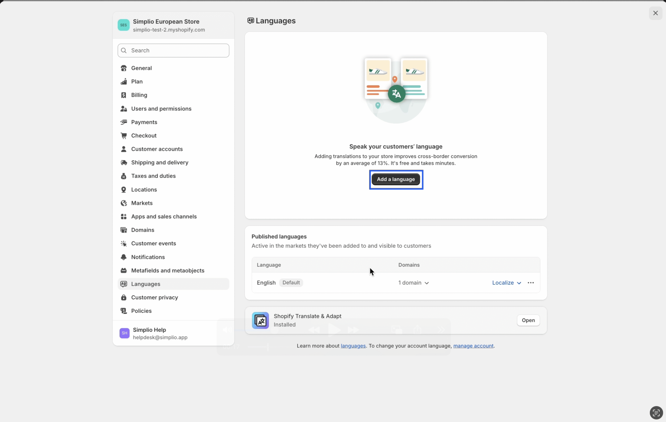 Step 4: Click on “Add Language” and select the language used in your store.