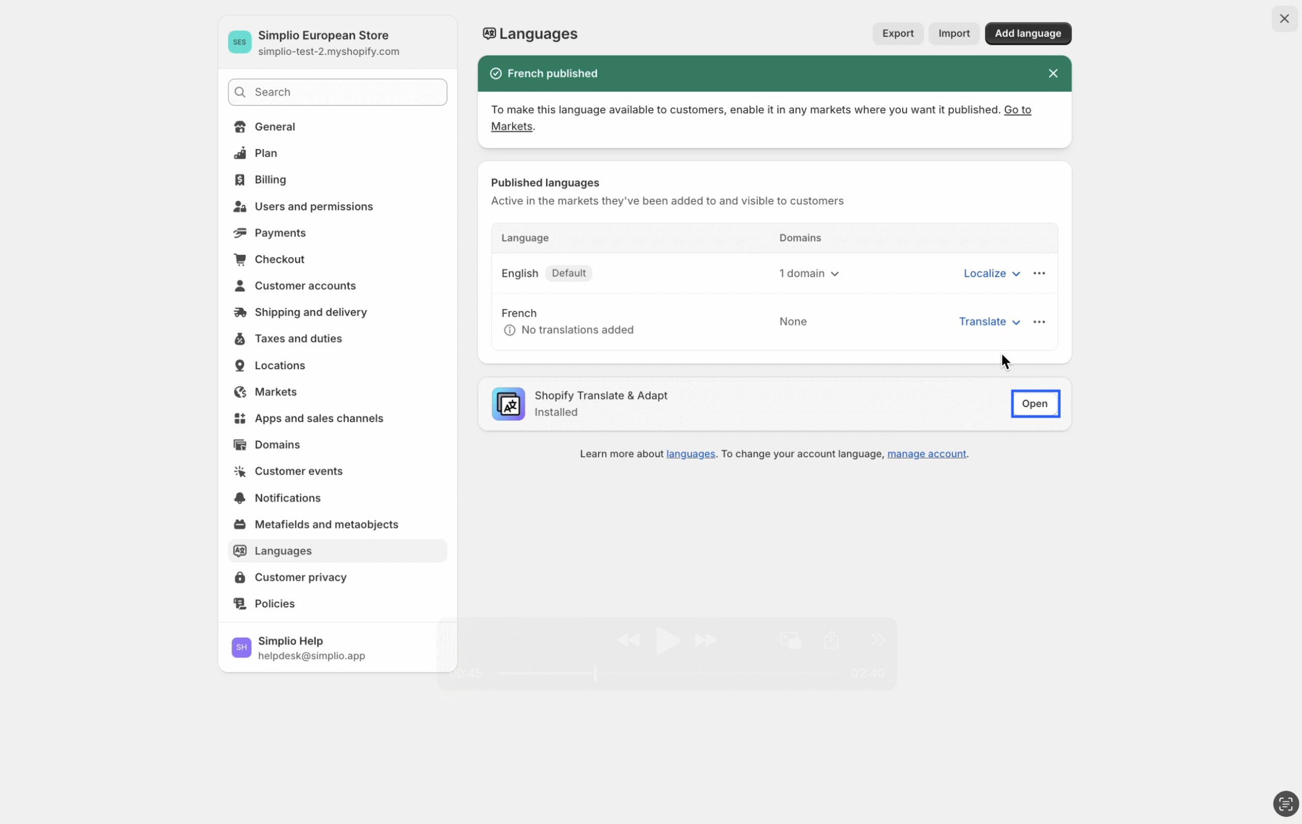 Please note that our app’s product translation feature is integrated with Shopify’s ‘Translate & Adapt‘ application.
