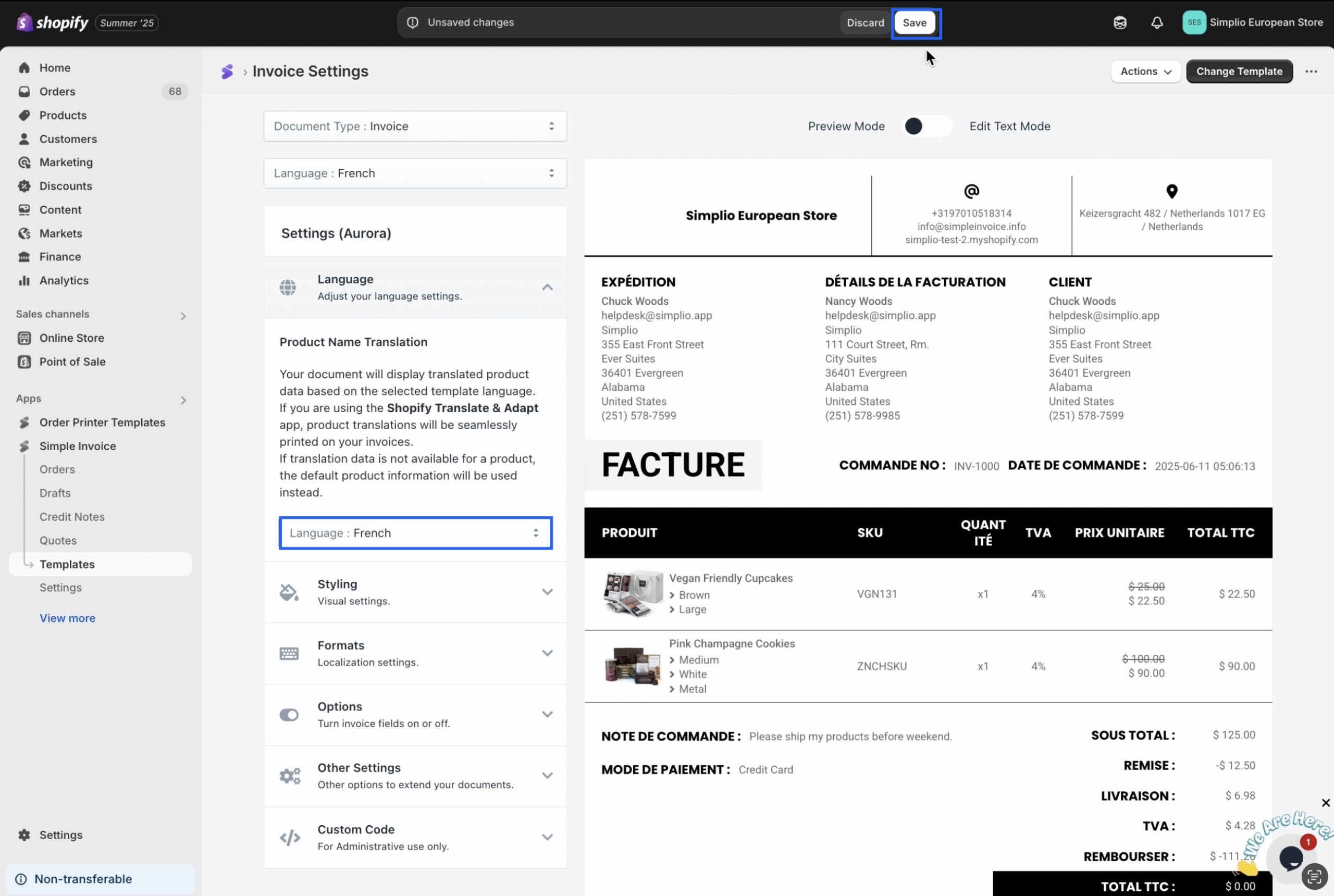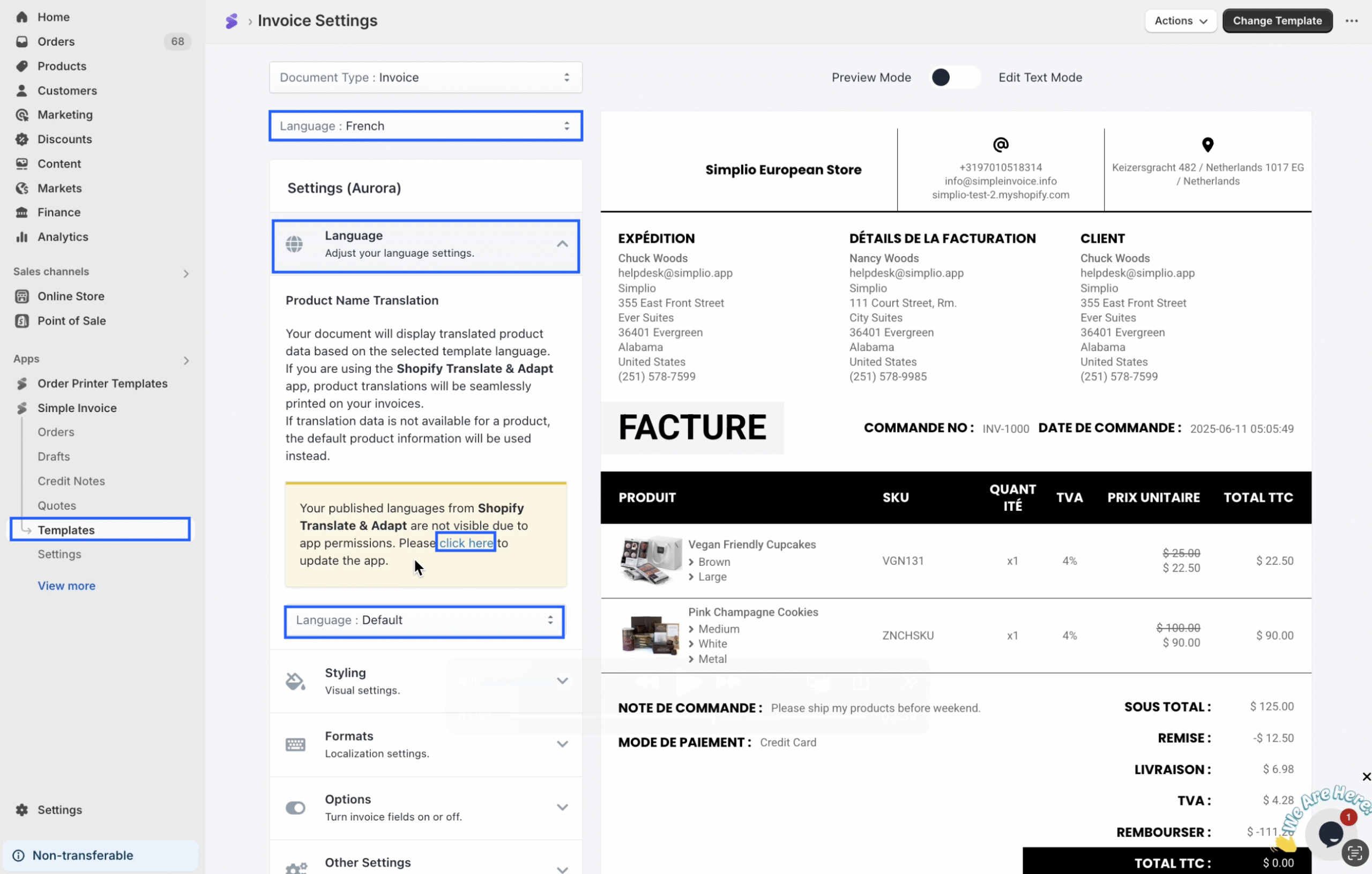 • Does Simple Invoice support Shopify’s multi-currency conversion functionality?