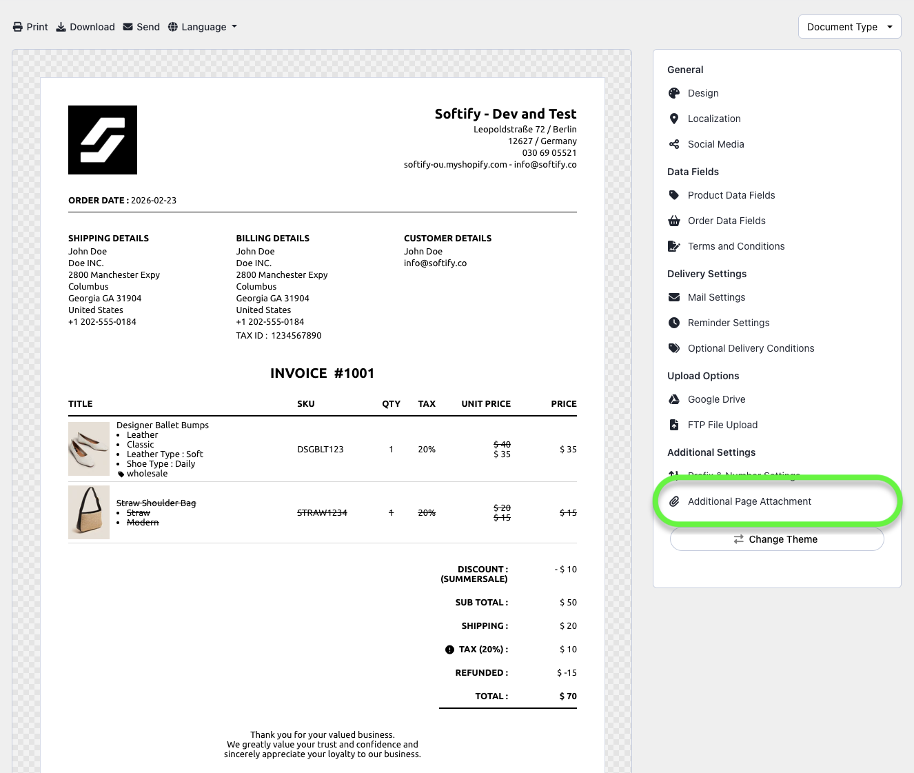Step 4: In the Template Design page, click on Additional Page Attachment.