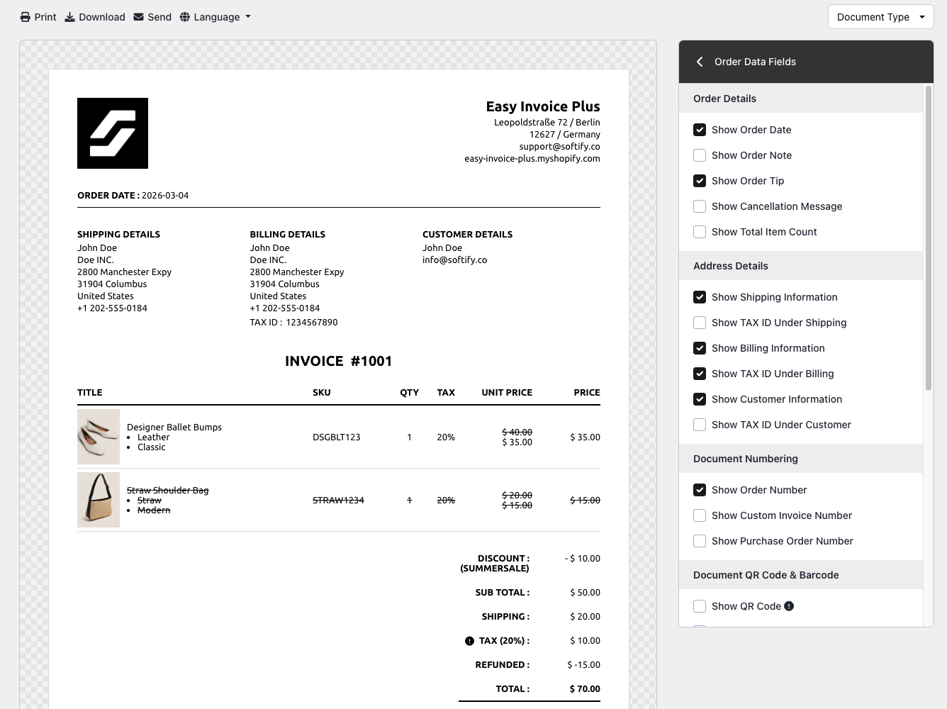 This guide provides all the essential information on customizing order data fields on your invoices using Easy Order Manager+.