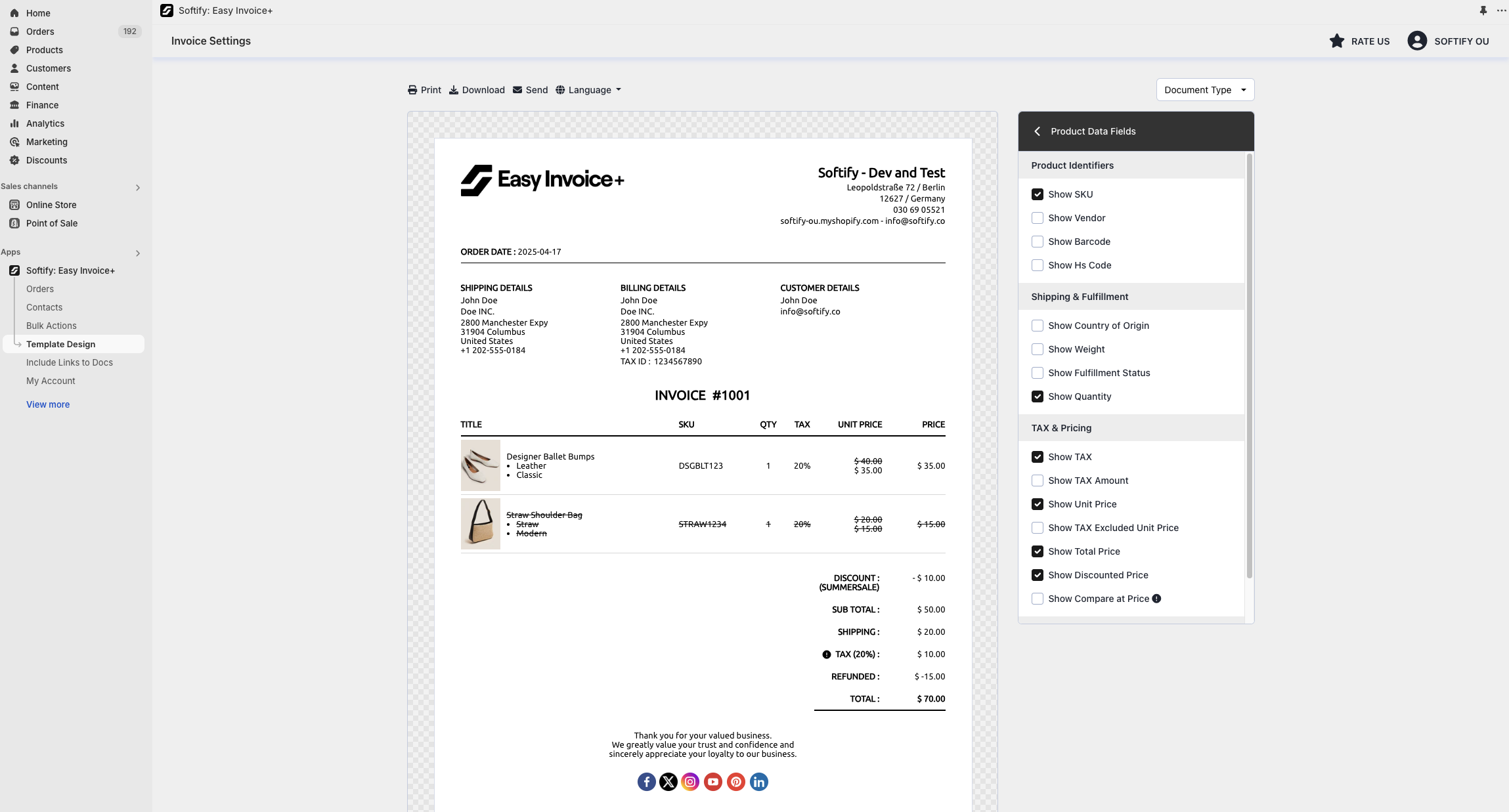 This guide provides all the essential information for customizing which product data fields are displayed on your invoices.